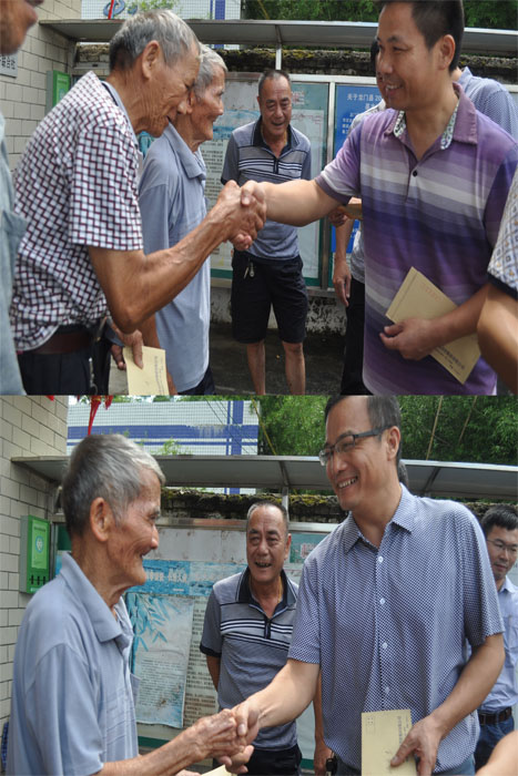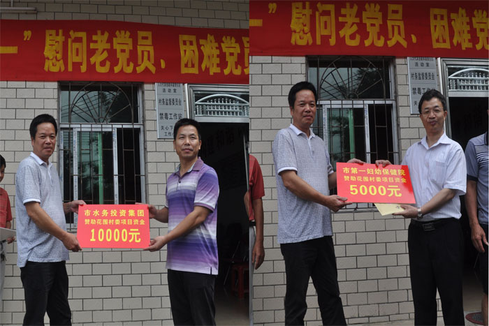 座談會后舉行了簡單的捐資儀式,楊翠忠副書記、劉哲副總經(jīng)理和陳偉明書記向老黨員、困難黨員一一發(fā)放慰問金并送上節(jié)日的祝福。兩單位共捐資15000元支持花圍村電灌站建設(shè)。