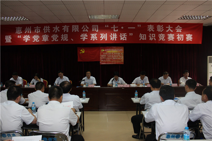 7月1日,市供水公司召開(kāi)“七一”表彰大會(huì)暨“學(xué)黨章黨規(guī)、學(xué)系列講話(huà)”知識(shí)競(jìng)賽初賽,以新黨員入黨宣誓及老黨員重溫誓詞、表彰先進(jìn)、開(kāi)展“兩學(xué)一做”專(zhuān)題黨課和知識(shí)競(jìng)賽的方式,隆重慶祝中國(guó)共產(chǎn)黨誕辰95周年。