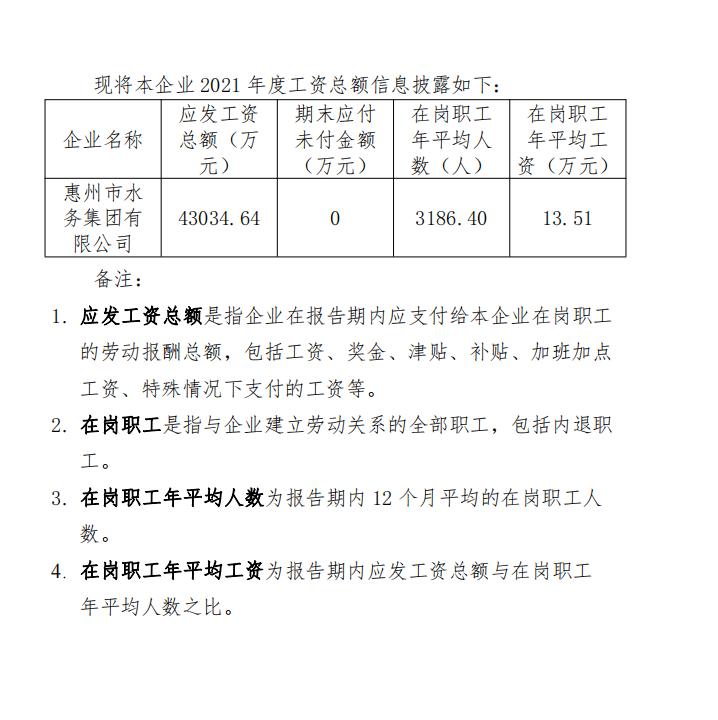 2021年惠州市水務集團有限公司工資總額信息披露
