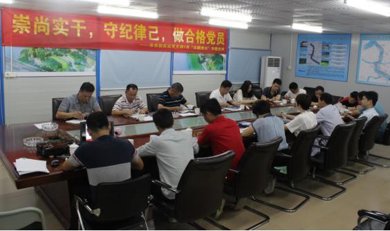 97周年,進一步激發(fā)全體黨員干事創(chuàng)業(yè)、創(chuàng)優(yōu)爭先的熱情,2018年7月20日,市水投實業(yè)黨支部在新開河項目部會議室舉行了“崇尚實干,守紀律己,做合格黨員”專題黨課作為7月“主題黨日”活動。
