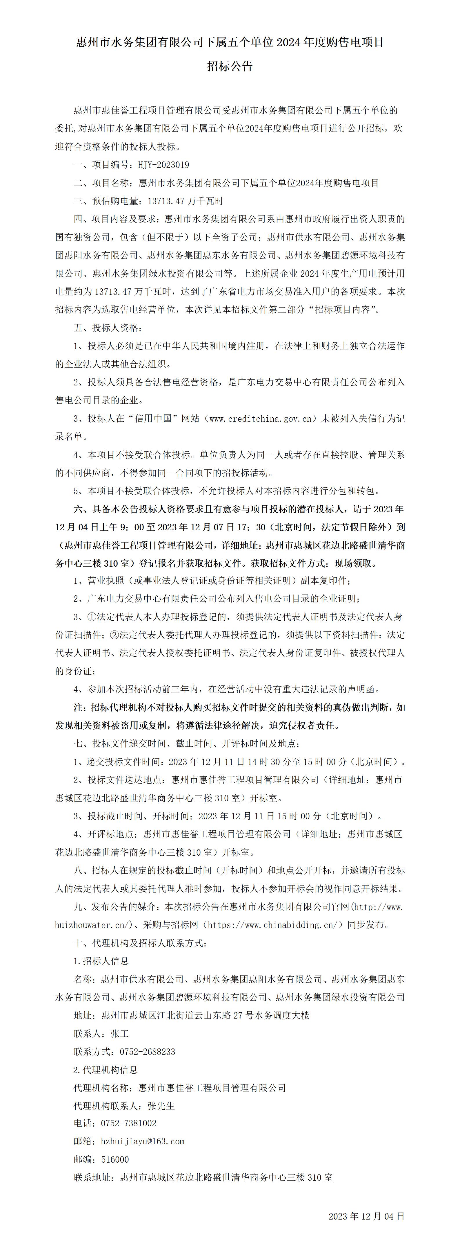 惠州市水務(wù)集團(tuán)有限公司下屬五個單位2024年度購售電項(xiàng)目招標(biāo)公告.pdf