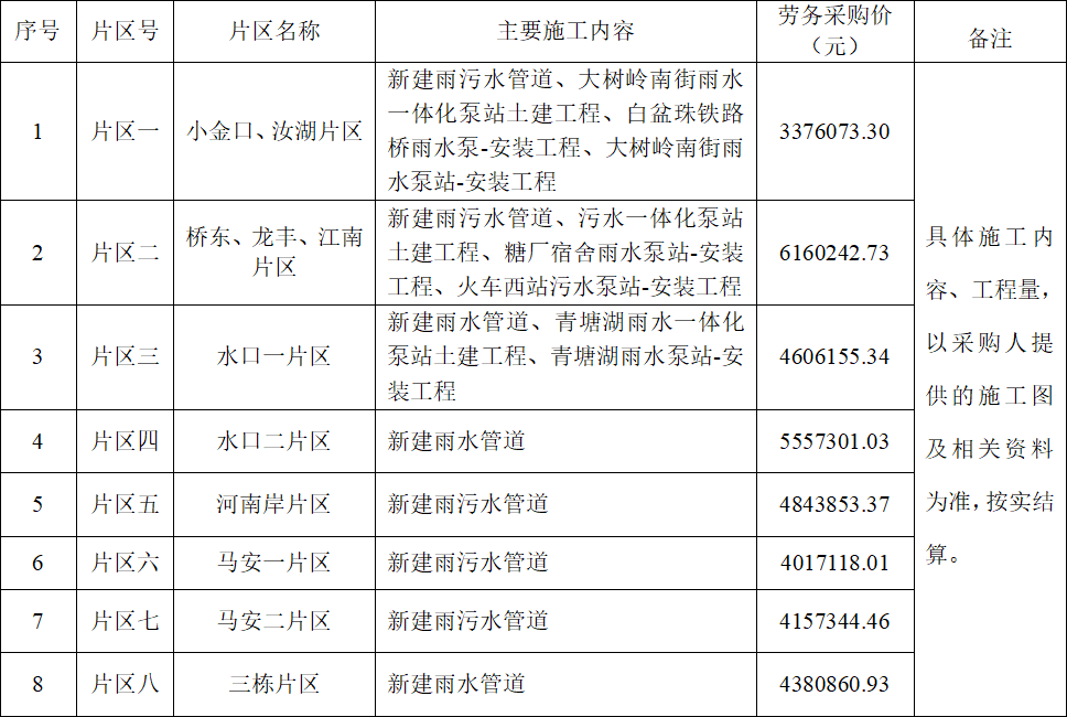 2.4本項(xiàng)目劃分為8個(gè)片區(qū)進(jìn)行勞務(wù)采購(gòu),具體劃分見(jiàn)下表: