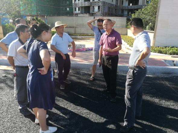 董事長、總經(jīng)理具杏祥帶隊到大湖溪河(瀝)水環(huán)境綜合整治工程鹿江北路道路施工現(xiàn)場檢查瀝青路面施工情況