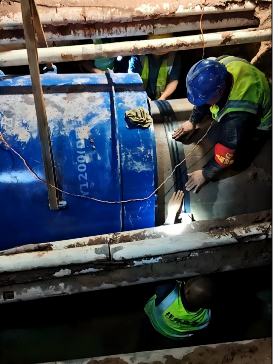 開挖現(xiàn)場變成了一個燈火通明的“地下手術(shù)室”。鉆孔機(jī)靜立一旁,搶修隊員們依靠人力,像考古學(xué)家般小心翼翼地在管線夾層中清理出作業(yè)面。泥水混雜,空間逼仄,抽水泵在一旁不知疲倦地轟鳴,將不斷滲出的積水及時排走。每一次鐵鏟的起落,隊員們都格外專注。 泥漿與地下滲水濕透了工裝,但所有人的注意力都高度集中于一點:將那副特制的、重達(dá)數(shù)百公斤的“搶修夾”精準(zhǔn)吊裝到位。它如同一個巨大的“血管夾”,在漏點處被穩(wěn)穩(wěn)合攏、緊固,憑借強(qiáng)大的密封力瞬間止住漏水。整個過程,管道壓力平穩(wěn),未影響區(qū)域正常供水。