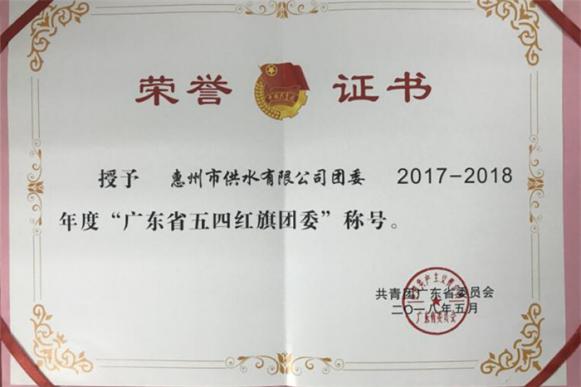 市供水公司團(tuán)委榮獲2017~2018年度“廣東省五四紅旗團(tuán)委”稱號(hào)