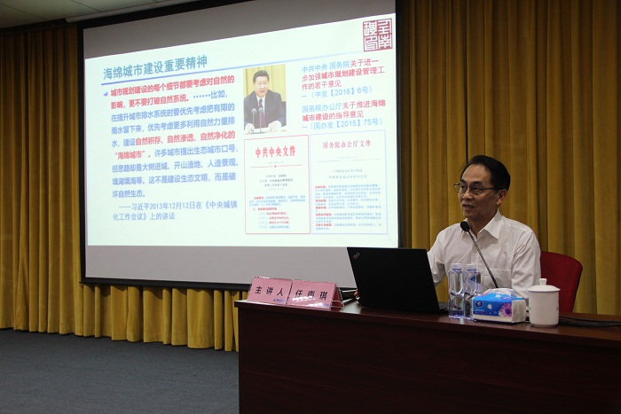 中國工程院院士、哈爾濱工業(yè)大學(xué)副校長任南琪以《海綿城市理念與黑臭水體治理實(shí)踐》為題進(jìn)行授課。在講座中,任南琪介紹,水體治理原則是保障三大功能,即保障生物凈化、生態(tài)景觀、泄洪排澇功能,可以采取的措施和目標(biāo)為嚴(yán)格控制點(diǎn)、面污染源,初期修復(fù)技術(shù)措施,持續(xù)的生態(tài)凈化系統(tǒng)與措施,使其具有足夠的水動力和泄洪能力。任南琪院士強(qiáng)調(diào),黑臭水體治理是海綿城市建設(shè)的組成部分,黑臭水體治理必須樹立海綿城市理念,并確立