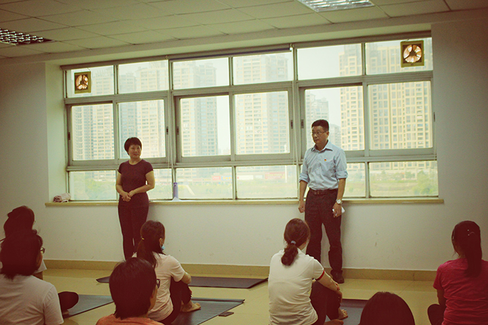 為辦好這次活動(dòng) ,公司特邀曾冬梅老師來(lái)進(jìn)行輔導(dǎo),曾老師練習(xí)瑜伽12年,執(zhí)教6年,獲得了全美聯(lián)盟RYT200教師培訓(xùn)證書。這次開(kāi)班共有24名女職工參加,平均年齡35歲,最大51歲。