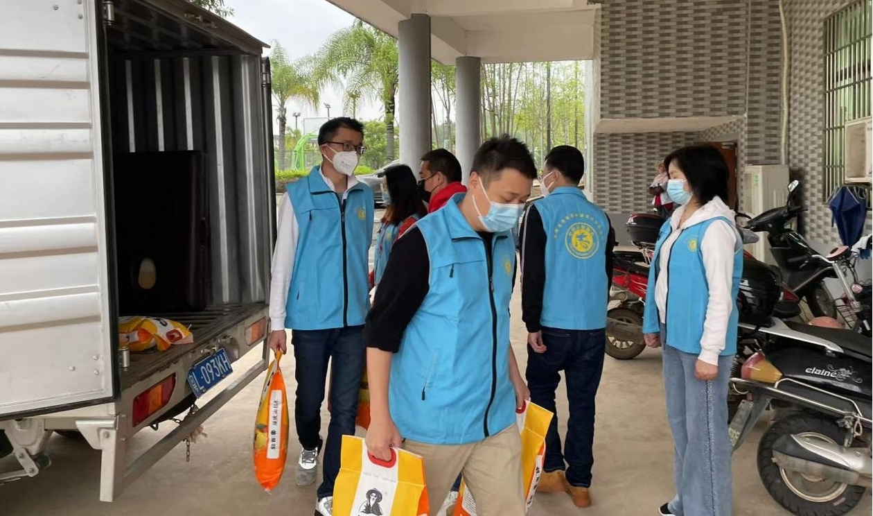 為保障慰問活動的順利開展,水務“藍精靈”志愿者們提前到位進行準備,對慰問物資進行整理擺放。