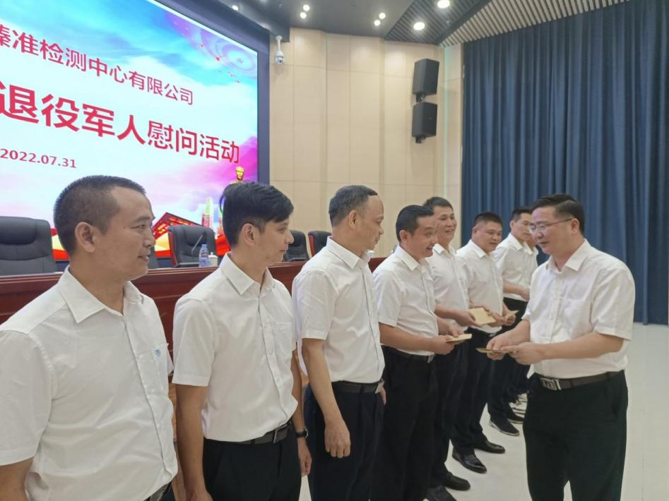 檢測中心黨支部書記、董事長李小鴻代表中心向退役軍人員工送上節(jié)日問候并發(fā)放慰問金,感謝他們服兵役時保家衛(wèi)國、英勇戰(zhàn)斗、無私奉獻(xiàn),贊揚(yáng)他們退伍復(fù)員后到企業(yè)繼續(xù)發(fā)揚(yáng)服從命令聽指揮的部隊(duì)精神和沖鋒一線、吃苦耐勞的革命精神。