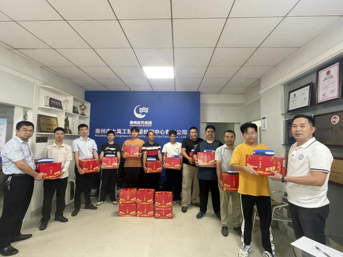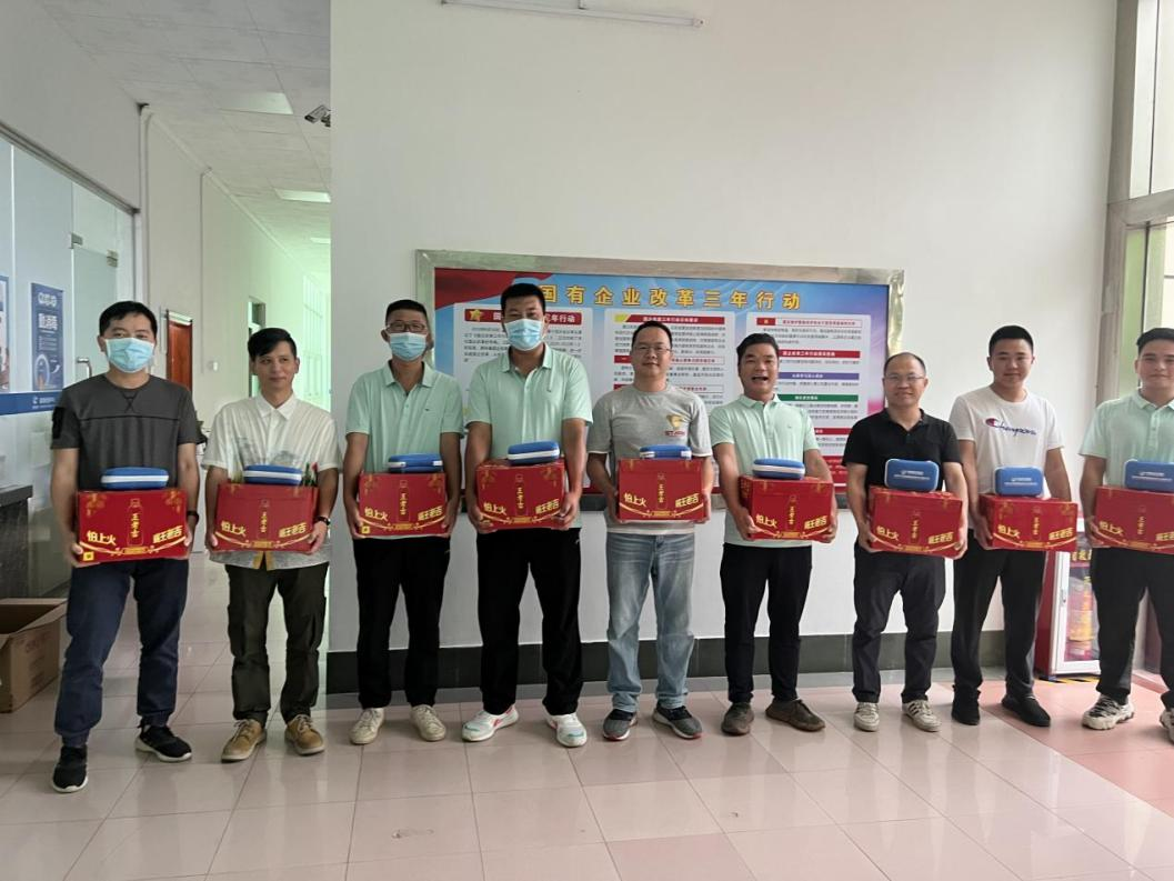 中心各事業(yè)部領(lǐng)導(dǎo)為一線職工送上清涼飲料和含有應(yīng)急救護(hù)手冊(cè)、消毒酒精、風(fēng)油精、驅(qū)蚊水等物品的防暑降溫包,這是中心特意定制的,旨在全方位保障一線職工外出作業(yè)安全。